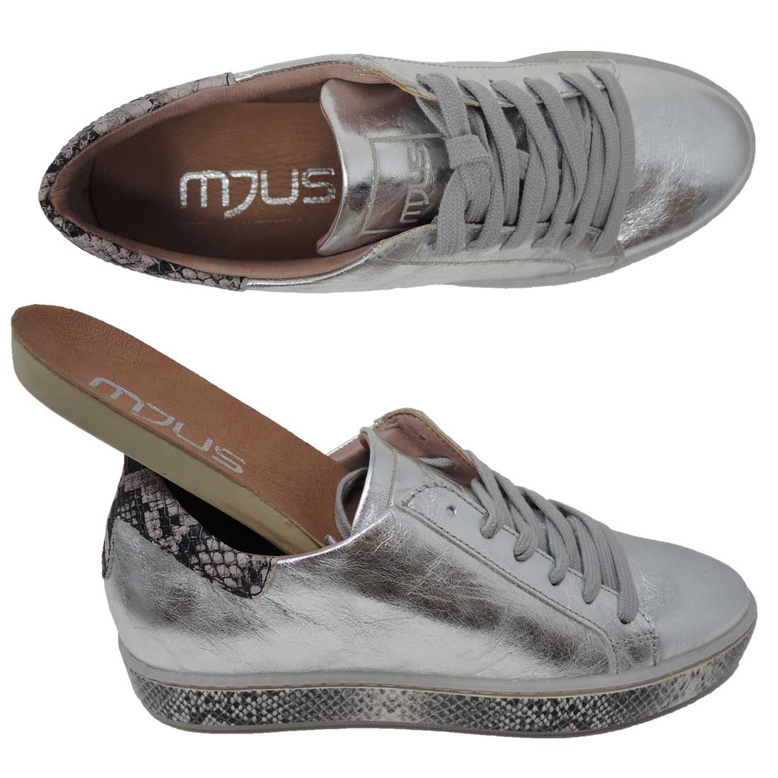 Leder Sneaker MJUS by AS98 argento silber metallic Modell 876137 Made in Italy mehr